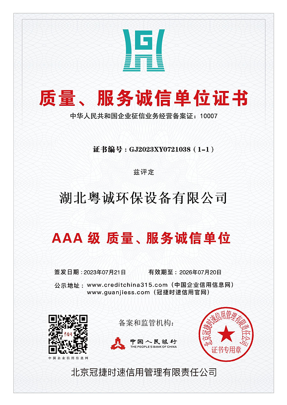 湖北粤诚环保设备有限公司自成立以来,始终坚守诚信为本、质量至上的原则,致力于为客户提供卓越的产品与服务。在多年的市场洗礼中,我们凭借出色的业绩和卓越的品质,赢得了广大客户的信赖与赞誉。